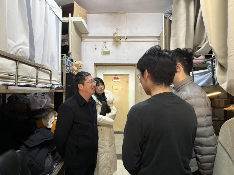 检查过程中,学院领导与辅导员走访学生宿舍,与同学们亲切交流,了解同学们的学习生活情况,并仔细查看宿舍卫生状况、用电规范、消防设施配备等情况,重点排查违规使用大功率电器、私拉乱接电线等安全隐患。