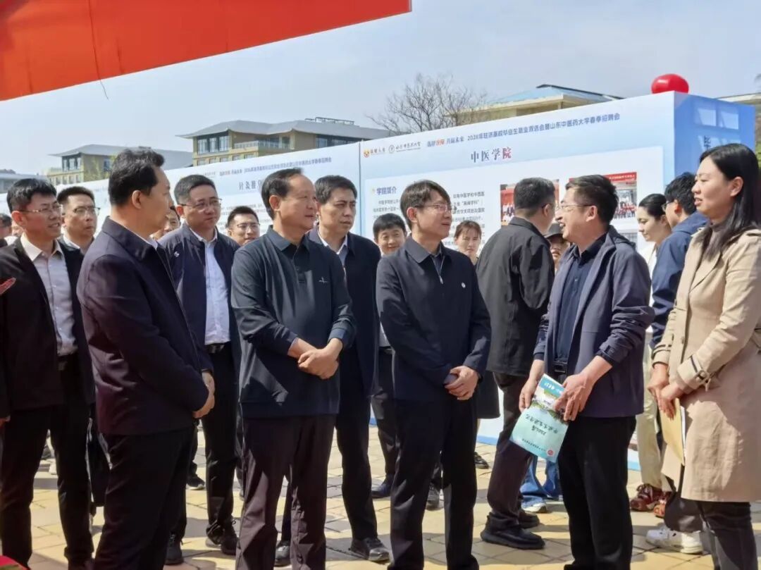 校党委书记张立祥,校长李可建,党委委员、副校长张玉龙亲临现场,细致了解就业对接、义诊服务、产品展示等情况,并与驻场老师、志愿者及求职学子亲切交流,勉励大家把握春招机遇,将中医药专业所长与社会需求相结合,在基层医疗、医药健康等领域实现人生价值。
